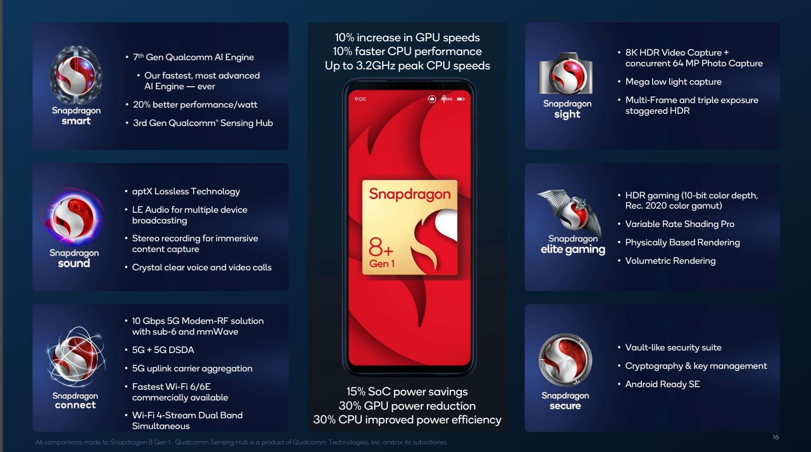 Помимо этого Snapdragon 8+ Gen 1 имеет на борту новый 5G-модем Snapdragon X65, 18-битный сигнальный процессор Spectra, беспроводные модули Wi-Fi 6E и Bluetooth 5.3 в составе FastConnect 6900, обновлённый нейронный блок Hexagon и приёмник GPS, поддерживающий все мировые навигационные системы.